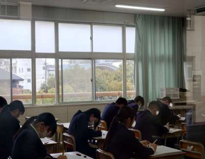 今日から《3年生は学年末テストです》。中学校生活最後の定期テストとなりました。初日は「音楽」と「理科」のテストが行われています。