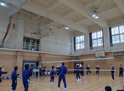 午後から1年生が《球技大会(バレーボール)》を行いました。
