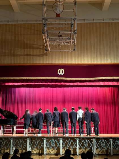 体育館で合唱コンクールのリハーサルを行いました。本番は2日後です。