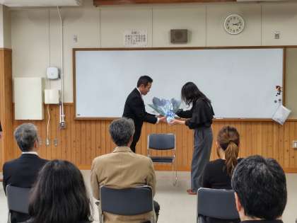 昨日は午後からあいにくの雨になってしまいましたが、《令和6年度末教職員人事異動に伴う「離着任式」》を行いました。本校で3年余勤務された渡邉教頭先生が異動となり、新しく矢倉教頭先生が着任しました。