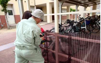 普段は毎日朝早くから学校内外の清掃・散水、花壇の花や植栽の手入れなどをしてもらっている姿を見かける本校の管理作業員さんたちですが、今日は《端材の波板を有効活用して校内の自転車置き場に「雨除け」》を取り付けてもらいました。ありがとうございます。