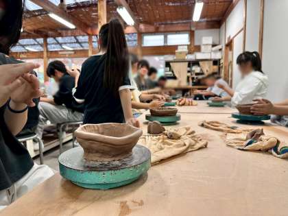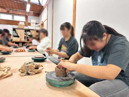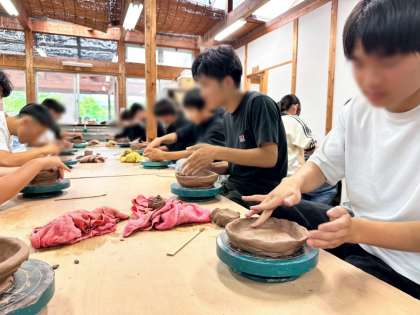 風で波が高いためマリン体験が陶芸体験に変更になりました。