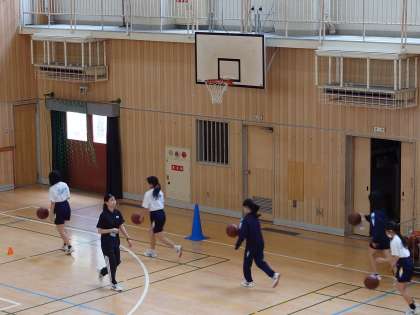 2年男子体育(剣道)、1年社会(歴史的分野)、2年女子体育(バスケットボール)の研究授業の様子です。