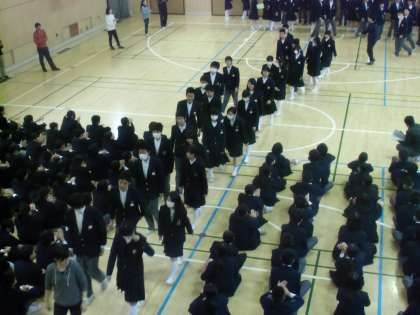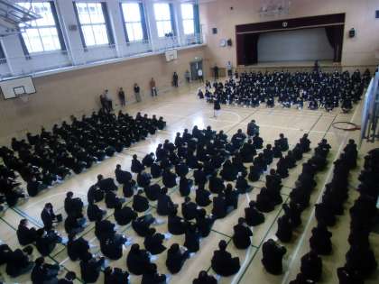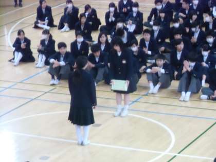 本日1限目、体育館で送る会が行われ、在校生全員で卒業生を見送りました。卒業式当日は、代表生徒しか参加できないので、多くの生徒が顔を合わせるのが最後になりました。