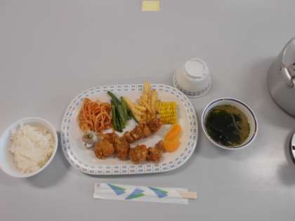 食堂の窓の外には海が広がって、素晴らしい景色でしたが、食事をとっているときその海から、潜水艦が顔を覗かせました。