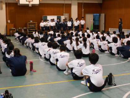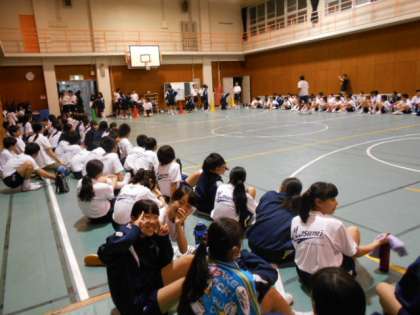 初日、最後のプログラムだったのが室内レクリエーションです。クラス対抗で、いろいろな競技で競い合いました。