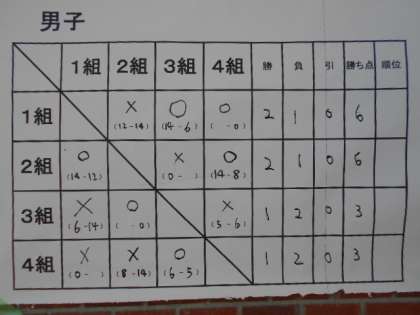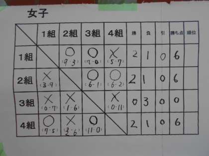 優勝は勝ち点12点で同点優勝の 1組 2組 の2クラスです。