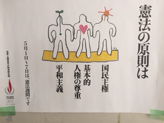 職員室の前には、「憲法週間」のポスターが貼ってあります。