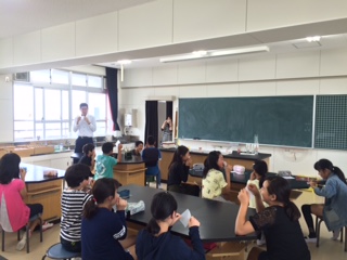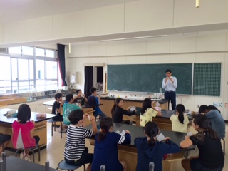 理科では、薬包紙の震えによって音の伝わり方を学び、コップとゴムを使って楽器を作りました。美術では、絵画泥棒が盗もうとしている絵を捜すゲームをしました。英語ではBe動詞を使って「僕は○○のファンです。」と言うことができました。