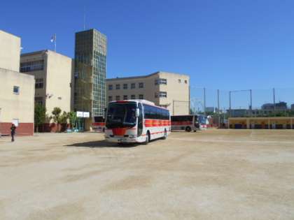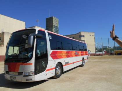 さあ、バスに乗って出発です。まずは名神高速黒丸PAをめざします。