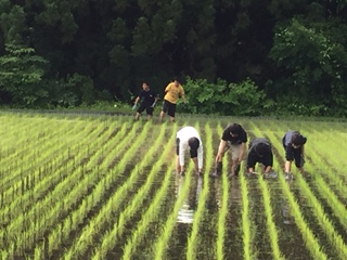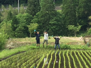 田植え体験をしました。田んぼの中ではうまく歩けませんが、頑張りました。
