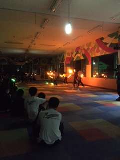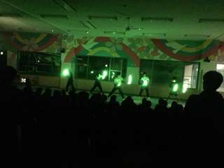 レクリエーション大会です。少し暗くて見えにくいかもしれませんが、スーパーダンスチームの素晴らしいパフォーマンスに、会場も大盛り上がりです。