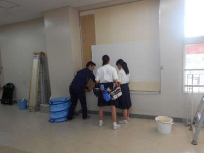建築講座です。「インテリア岡村」の先生に教えていただき、クロス貼りの体験をしました。