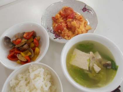 できました。きれいに盛りつけて、校長先生の合図でいただきます♪