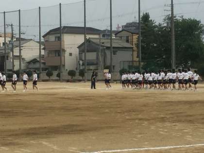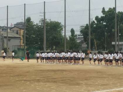 グラウンドでは、体育大会の入場行進の練習が始まっています。