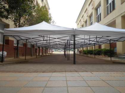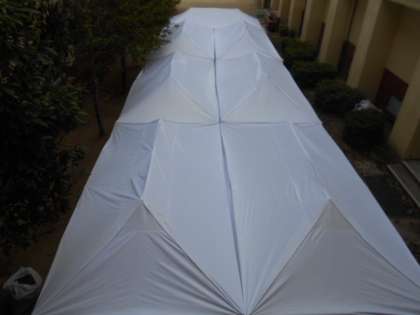新しいテントです。並べると、かなりきれいです。PTAと施設開放委員会から買っていただきました。体育大会では生徒席のテントとして使用させていただきます。ありがとうございました。