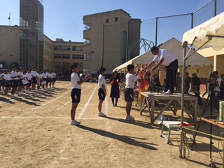 どのクラスも頑張りました。結果発表です。各学年優勝は1年3組・2年4組・3年4組でした。準優勝は1年1組・2年3組・3年3組でした。みなさん、最高の天気で体育大会ができてよかったですね。ゆっくり体を休めてください。