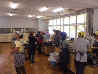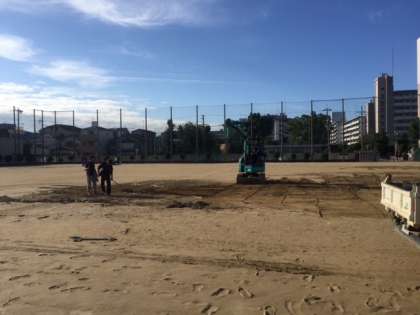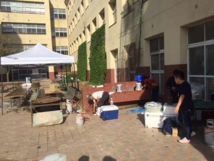 朝早くから、グラウンドの整備、焼きそばの用意、豚汁の仕込みなど、