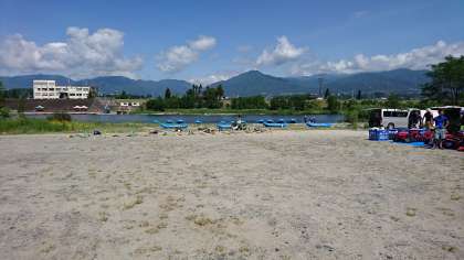 ラフティングの場所に到着しました。本当に天気がいいですね。絶好のラフティング日和です。