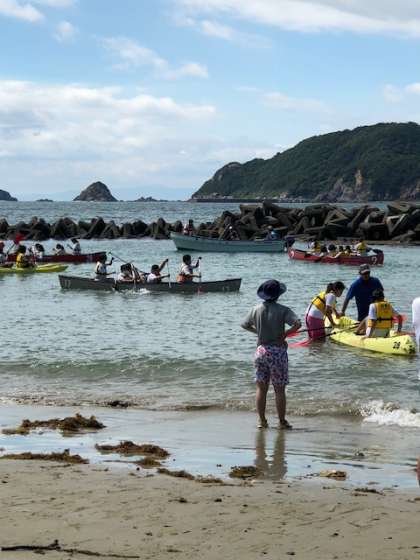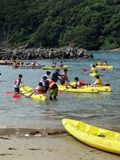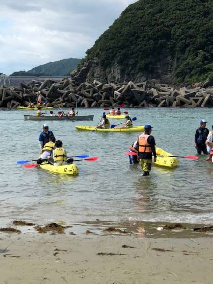 カヌー・カヤック組はまず浅瀬で練習です。