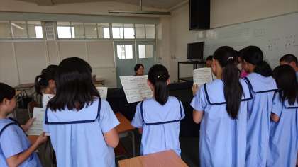 音楽の授業は、「歌とリズム」のタイトルで「想い出がいっぱい」をみんなで歌いました。