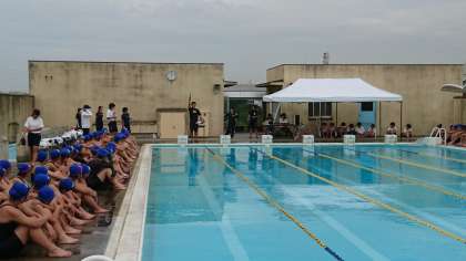 梅雨あけの空のもと、2年生の水泳大会が開催されました。