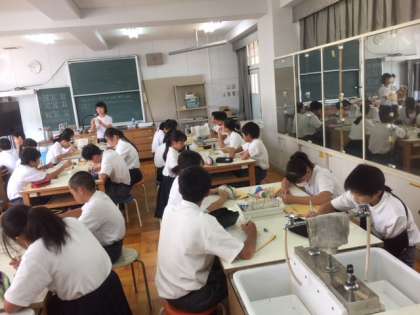 本日の2時間目、1年2組の理科で「主体的・対話的な深い学び」に関する研究授業が行われました。