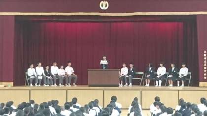 後期の役員のみなさん、生徒の代表者として、より良い真住中学校を創造するため、汗を流してください。