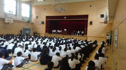 本日、3時間目に後期生徒会役員選挙の立会演説会を実施しました。