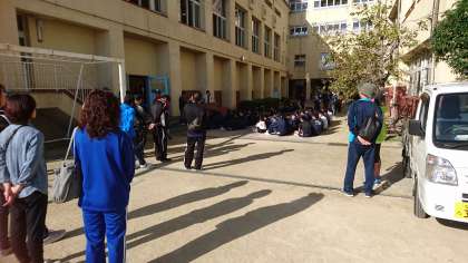 開会式の様子です。参加生徒は約80名、地域方々・PTAの方々が40名以上参加してくださいました。