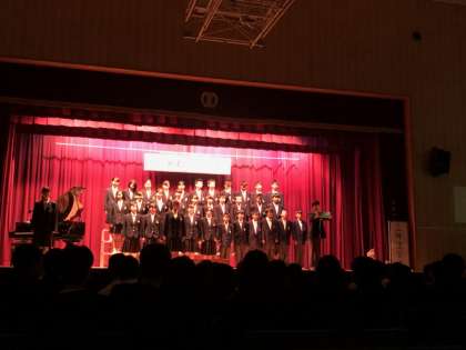 予定より10分おくれて、1年生の代表学級、1年2組による合唱「Over The Rainbow」が始まりました。