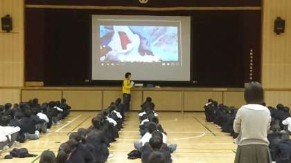 本日は、体育館にて「生命の誕生」のDVDを鑑賞したあと、教室に帰って講話をきき、ワークシートの記入を行いました。