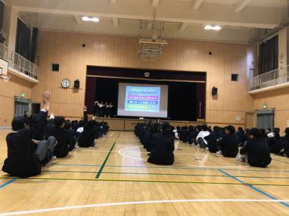 保健委員が中心となって、歯と口に関するクイズを行った後、学校医(歯科医)の金沢先生から「歯と口」の健康に関するお話をしていただきました。