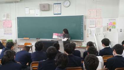 本日(2/16)の5時間目、学校元気アップ事業主催の、絵本の「読み聞かせ」が、