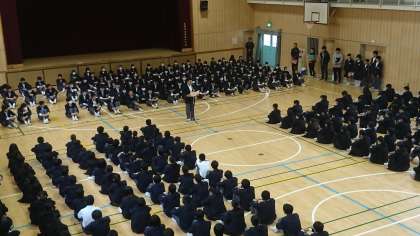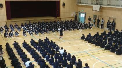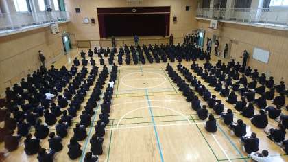 在校生代表の言葉・卒業生代表の言葉などの後、1・2年生の拍手とともに、3年生が退場していきました。
