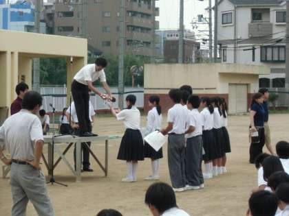 始業式の中で、夏季休業中に部活動で表彰を受けた賞状の伝達が行われました。