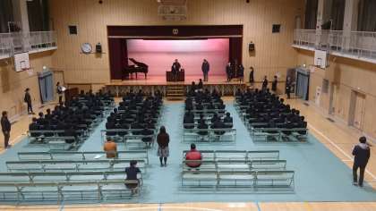 本日(3月12日)の2・3限、3年生は卒業式の練習を行っています。