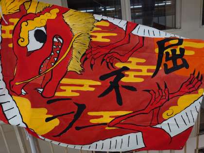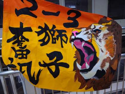 夏休みの宿題のデザイン画をもとに作成してきた各クラスの『応援旗』が完成しました。