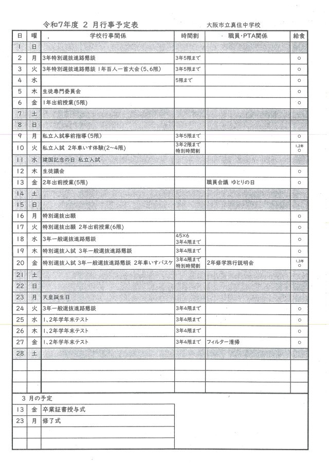 お子さまを通じて2月行事予定表を配布いたしますので、ご確認ください。