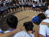 円陣を組んでクラスのまとまりを