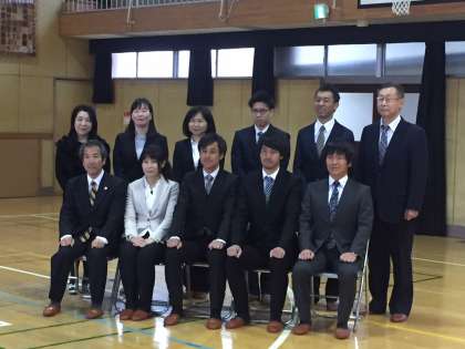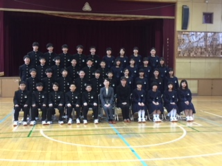 職員の集合写真撮影後、3年生所属の先生方の写真撮影、そのあと1年生から順に学級写真を撮影しました。