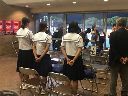 各係で生徒たちは懸命に仕事をしており、その甲斐もあって、いつもお褒めの言葉を頂きます。選手としてではなく、中学生とはいえ、大人の大会の運営に携わることでマナーを学ぶだけではなく、「指示待ち」から「積極的」に仕事をするという絶好の機会です。