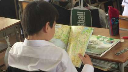 地図帳より、方角などの位置関係などについても調べています。