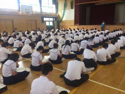3年生は本日体育館において、しおりに沿って行程や持ち物などの確認をしました。