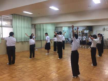 本日1限、1年生はそれぞれの場所で、レクリエーション大会の取り組みを行いました。