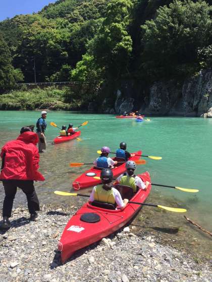 準備ができた班から、川に入ります。