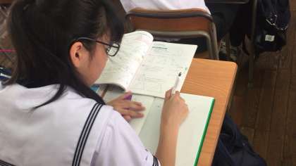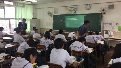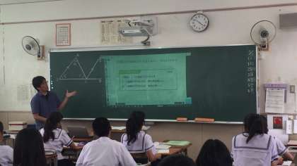 写真は3組、平行線と角の関係について学習し、三角形の角の性質を証明しています。