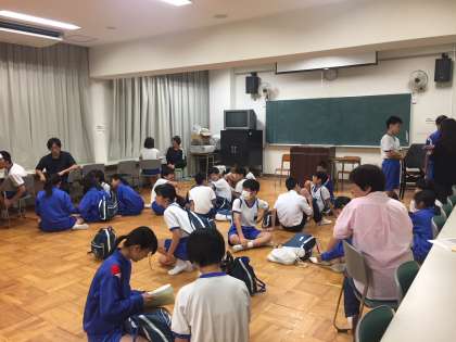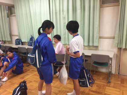 事業所までの距離や体験開始時間を考えて、多目的室で事業所ごとに出欠確認をしています。