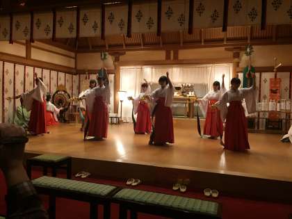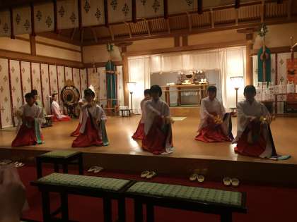 二日間練習したお神楽を、神楽殿にて奉納しています。