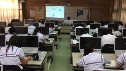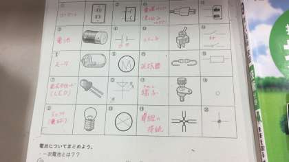 パソコン教室で、図記号や電池の種類(一次電池、二次電池)などを学習しています。
